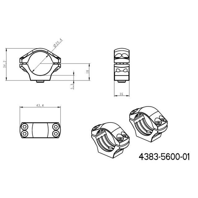 1 polegada anéis para luneta [25,4mm] | base curta Blaser