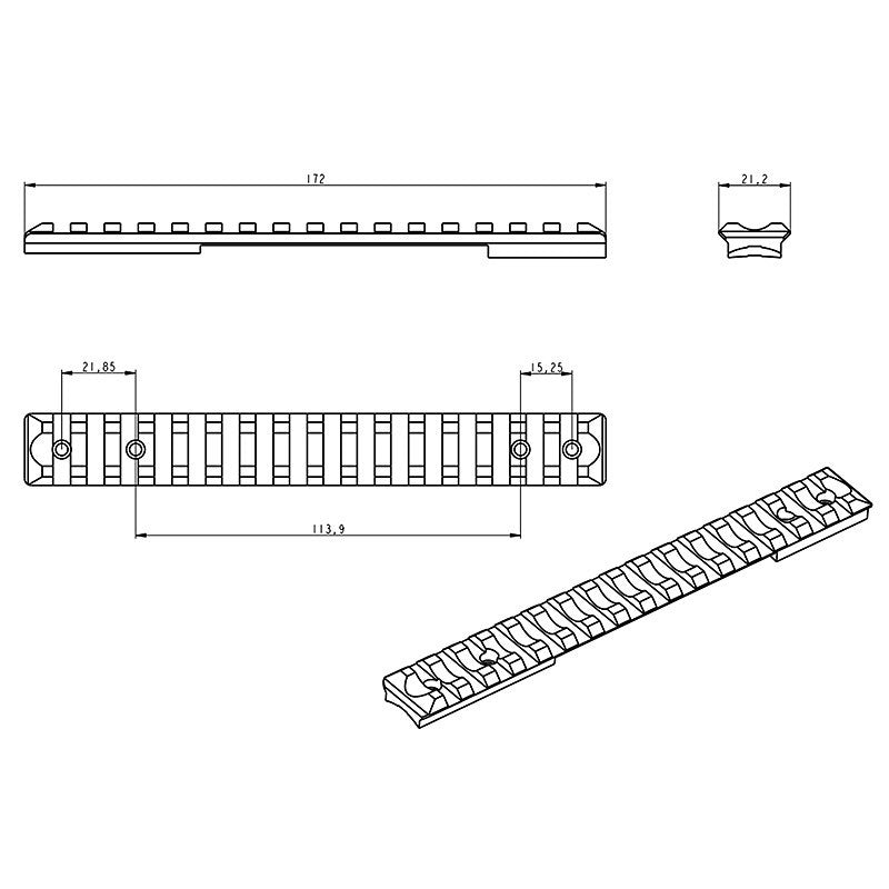 Trilho Picatinny [base de mira] para instalação de anéis para luneta com base Picatinny.