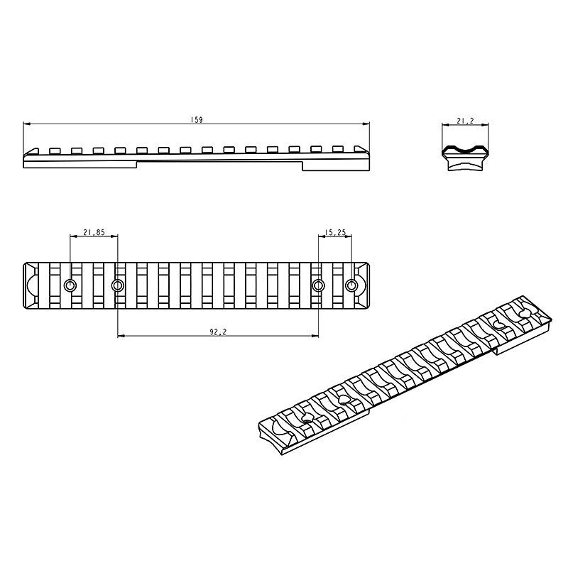 Este trilho é projetado para ser fixado diretamente ao ferrolho. Parafusos incluídos.