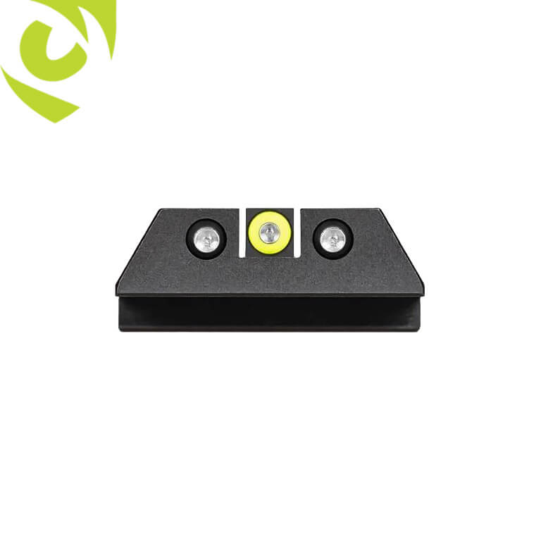 Visor noturno fixo miras com mira frontal de trítio e mira traseira de trítio.