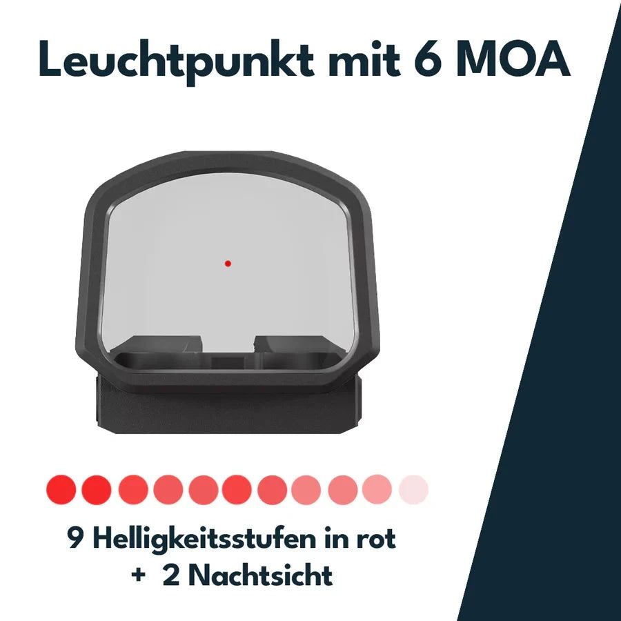 A lente asférica de alta performance, maior e com revestimento de desempenho, proporciona um campo de visão claro para aquisição de alvo mais rápida desde o saque e transições entre alvos. O corpo em liga de alumínio aeronáutico foi reforçado e uma placa base integrada foi adicionada, assim como uma nova bandeja de bateria em alumínio, para aumentar a fiabilidade em aplicações montadas na culatra.