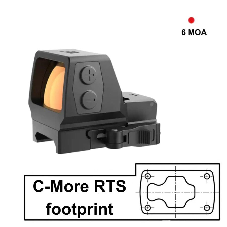 • Tamanho da janela com ponto de 6 MOA, perfeito para disparos rápidos