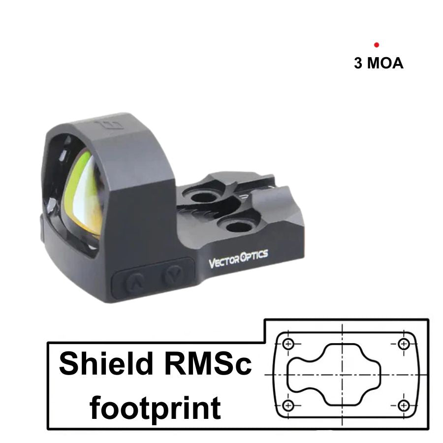 Esta mira de ponto vermelho utiliza o padrão de footprint Shield RMSc.